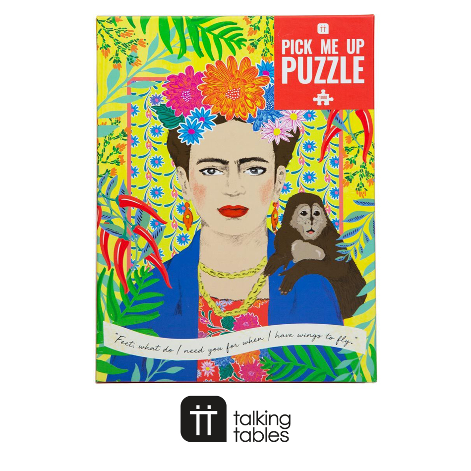 • Пъзел, плакат и любопитни факти за Фрида Кало в пъзела от 1000 части на Talking Tables. Този красиво илюстриран пъзел "Pick me up" включва портрет на мексиканската художник Фрида Кало и цитат. Страхотен подарък за рожден ден или коледен подарък за всеки фен или любител на пъзелите или изкуството на Фрида Кало! Този пъзел включва и съответстващ плакат на завършения дизайн и лист с любопитни факти за художничката.