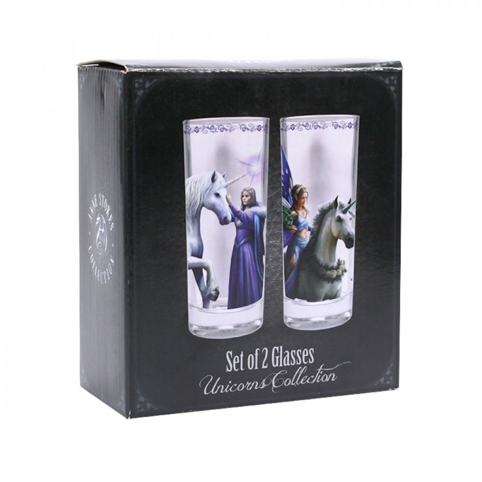 - В света на Анн Стоукс, известната фентъзи художничка, съществуват всякакви създания.В този малък сет от водни чаши за двама откриваме ефирни, нежни феи яхнали еднорози, които спокойно яздят през пространството. Стъклените аши са изработени от висококачествено стъкло, а принтът върху тях е издръжлив и не се трие.Потопете се в света на художничката и сънувайте на яве приказни същества и митологични образи!