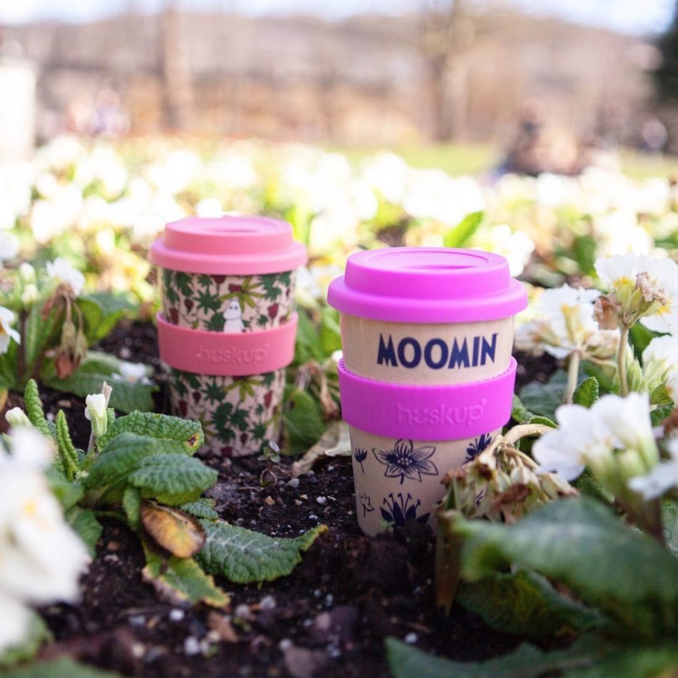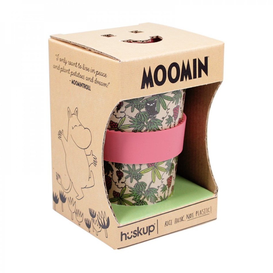 Чудесната еко чаша, в колаборация с Huskup, е изработена от люспата на оризово зърно, което я прави едновременно природосъобразна, многократна и безвредна за употреба. Като допълнителен бонус е и фактът, че е лека за носене, но плътна на допир. Удобната силиконова капачка е със затварящо се капаче, за да подсигури допълнително не-разливане на течности, а дебелият силиконов ринг предпазва от парене на повърхността при наливане на горещи напитки. Дори силиконът е 100 % рециклируем. Дизайнът включва свеж флорален мотив както и оригинална илюстрация на Муминтрол от Мумин долината. Всичко това е елегантно опаковано в брандирана подаръчна кутия.