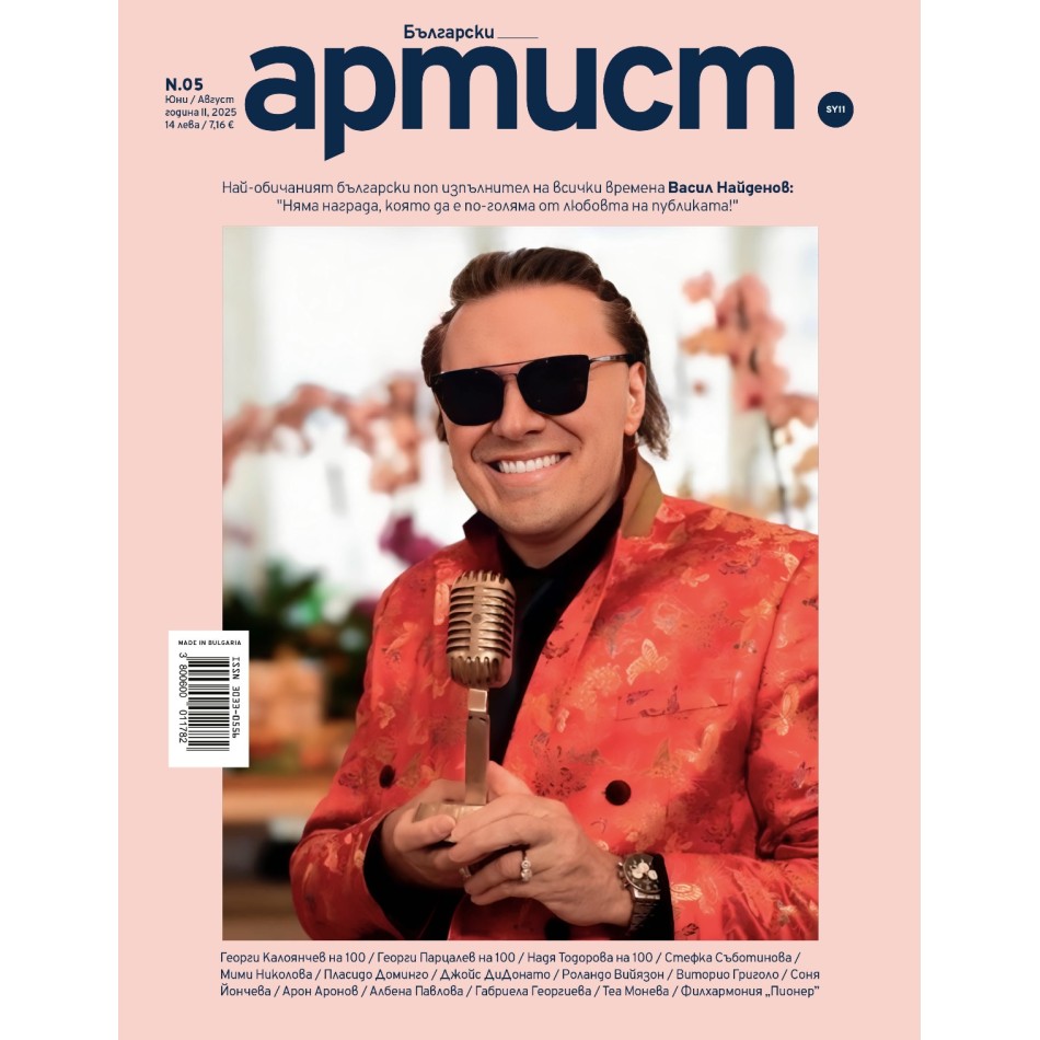 Списание “Български Артист” N5 е вече тук! Това е лятното издание, посветено на ПРЕСТИЖНИТЕ ОТЛИЧИЯ И АРТИСТИЧНИТЕ ВЕЛИЧИЯ! Така например герой на броя е обявеният от БГ Радио за „Най-обичан български поп изпълнител на всички времена” Васил Найденов - в откровено интервю за творческото дълголетие, неизчерпаемата любов на публиката, общественото развитие на България и състоянието на шоубизнеса по света и у нас.