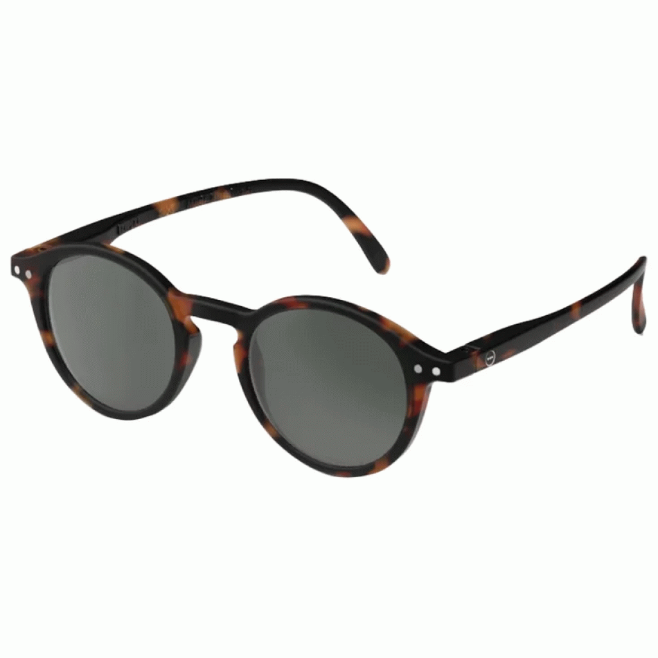 - IZIPIZI SUN D sunglasses - tortoise color, gray lenses - the eternal classic in a round, retro shape with the warm and versatile color of tortoise shell. This classic pattern never gets old and fits perfectly with almost any outfit - from casual to more elegant. With it, you look stylish, confident, and with a slight retro charm. These glasses are among our favorites because they are incredibly light and comfortable to wear all day long.The flexible handles with spring hinges adapt softly to the face, and the anti-slip coating provides comfort without compromise.