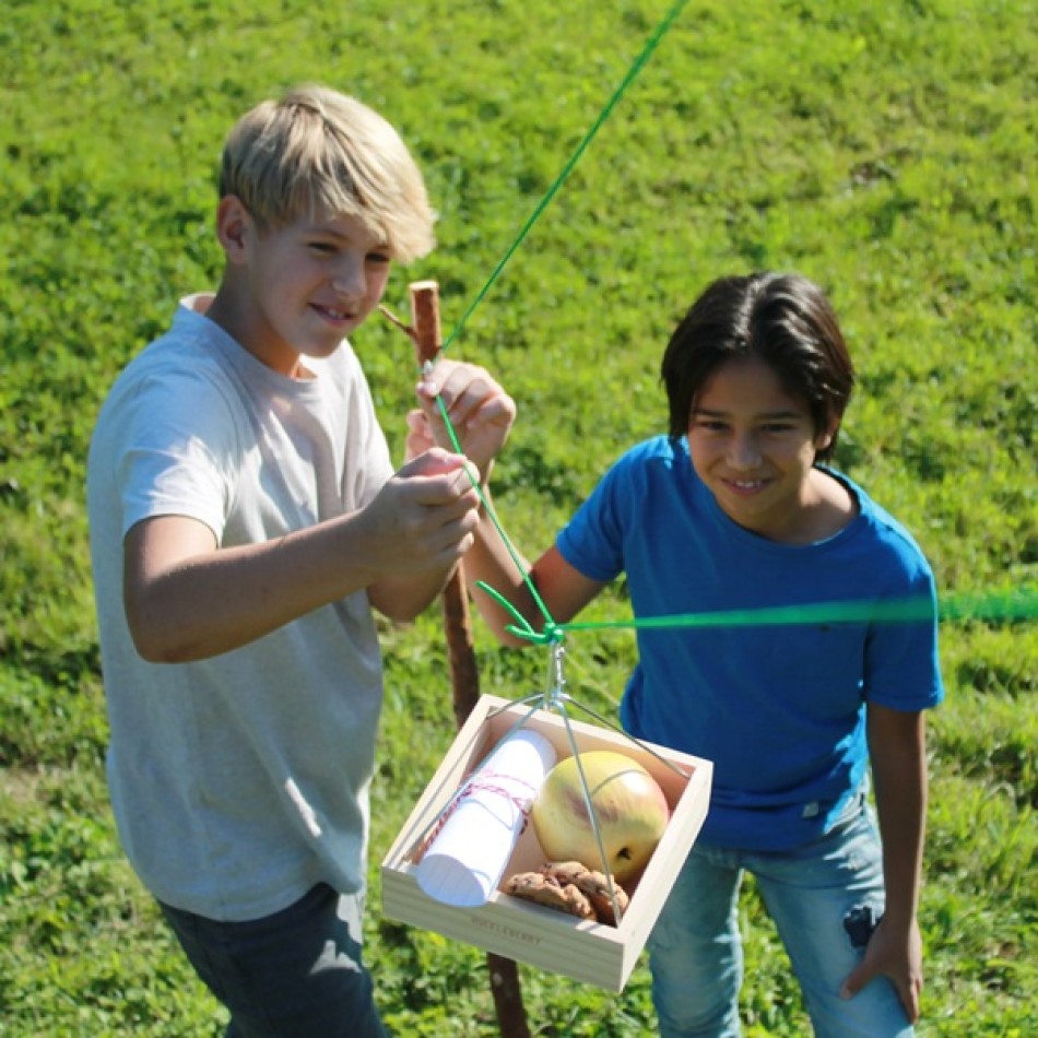 - Huckleberry - Take to the Air is a charming retro set for little engineers - a real adventure with a cable car and a gondola that slides down! It develops spatial thinking, creativity, and an understanding of mechanics - ideal for children who love to build, experiment, and see how something really "works". Easy to assemble, safe, and full of nostalgic charm - perfect for home, garden, camping or a gift for a little inventor!Imagine: you assemble a sturdy cable car between two points (trees, chairs, walls), place the little gondola, release it and watch it descend smoothly, carrying "passengers" or cargo - then you put it back and again! Pure childish joy, laughter and "One more time!" - develops patience, coordination, and engineering spirit in retro style!