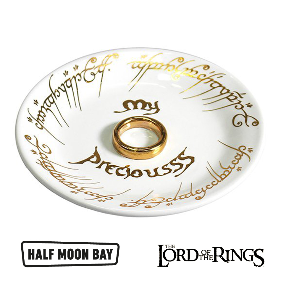Copyright: © New Line Productions, Inc. - Keep all your "preciousss" jewellery in a safe place, away from the hands of "filthy thieving Hobbitses" with this fabulous The Lord of the Rings accessory dish inspired by the iconic characer of Gollum. The stoneware dish features a crisp white base colour, with elven gold foil detailing around its edges, as well as the words, "My preciousss" surrounding a central 3D mould of the one ring of power. Packaged in a printed gift box, this is a fantastic purchase for any The Lord of the Rings fans and a great addition to a Middle Earth display.