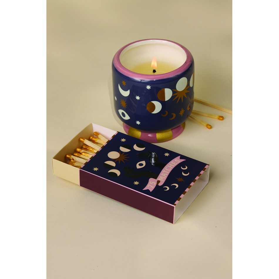Copyright: © Designworks Collective Company - Looking for a way to add a little magic to your evenings? Introducing the box of golden matches with a "Moon" design - not just an ordinary match, but a real accessory for stylish moments. With 75 matches, each 9.6 cm long, they are perfect for lighting candles, a fireplace, or even creating a romantic atmosphere. Their golden color and the cardboard box with a moon motif add elegance and charm. Don't wait, bring some light and magic to your home with these unique matches!