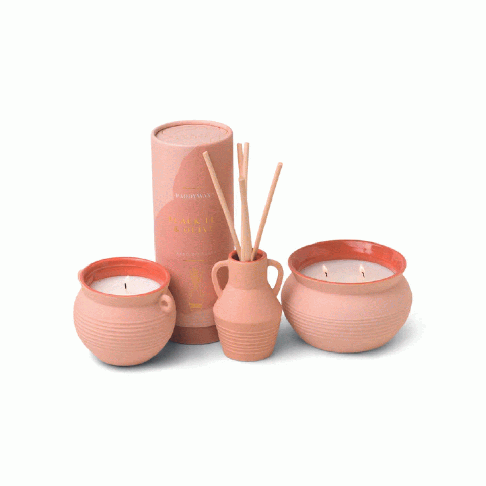 SA0401EU Pink Ceramic Diffuser Paddywax - Black Fig and Olive
