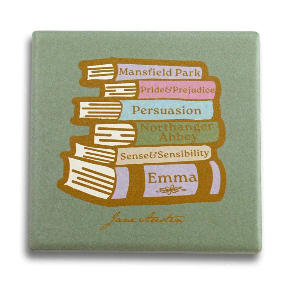 - If you believe that a good coffee goes best with a good book, this ceramic coaster is made just for you. Inspired by the classic works of Jane Austen, it brings a sense of elegance, romance, and that subtle literary charm that turns every break into a real pleasure.With its delicate design with stacked books, the coaster doesn’t just protect surfaces – it tells a story. Ideal for book lovers, it adds a stylish and peaceful accent to any corner for tea, coffee or afternoon inspiration.Made of sturdy ceramic, it is practical and durable, and its compact size makes it convenient for everyday use. A small detail with a literary soul – because every cup deserves good company.