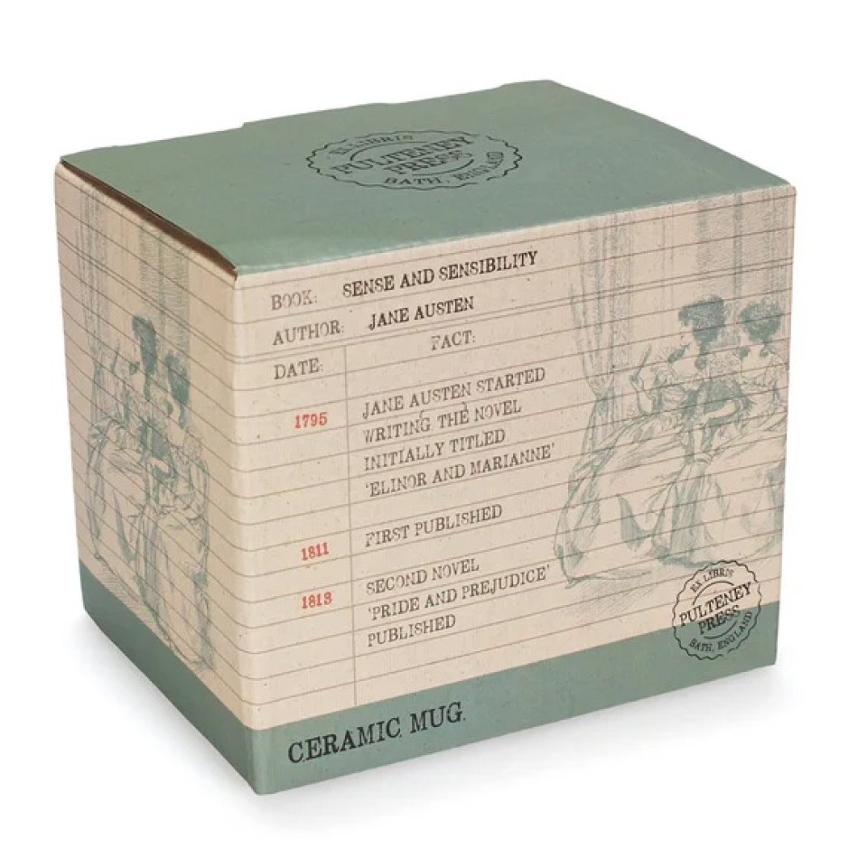 - The "Sense and Sensibility" mug from the Pulteney Press collection is the perfect way to add a classic touch to any coffee or tea. With a capacity of 310 ml, it is made of high-quality porcelain and features beautifully illustrated art inspired by Jane Austen's beloved work. It is a great gift for literature lovers and an ideal way to immerse yourself in the spirit of classic English literature. Perfect for both everyday use and your collection!