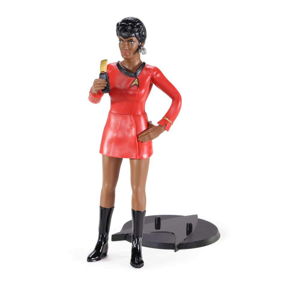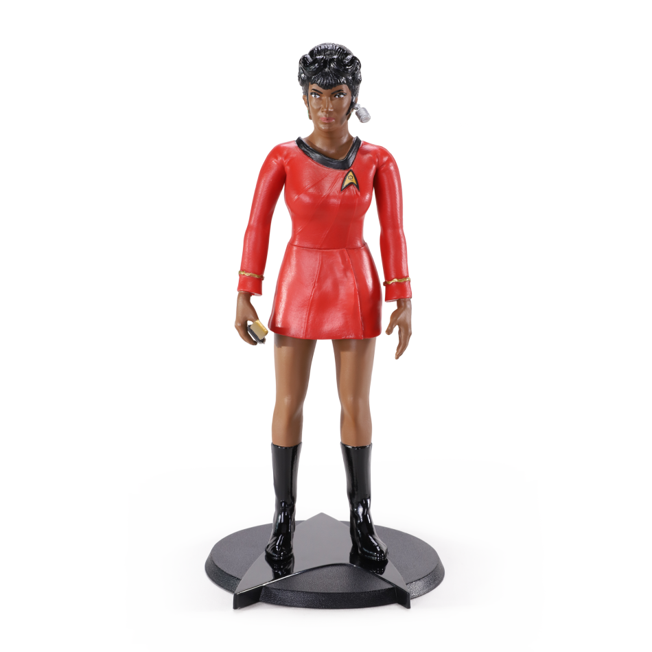 Copyright: © CBS Studios Inc. Star Trek. - Communications Lieutenants and true Star Trek fans! This BendyFigs figure of Lieutenant Niyota Uhura from “Star Trek: The Original Series” is an authentic, flexible and detailed replica of the iconic communications officer – a symbol of intelligence, grace, professionalism, and pioneering role! It allows you to recreate classic scenes from the bridge of the Enterprise, pose Uhura confidently in the red uniform or let her “maintain the connection” on your desk – perfect for anyone who wants to add a dose of retro-futurism, inspiration and variety to their collection, evoking exclamations of “Hailing frequencies open!” from every Trekker!This movable figure with flexible joints can take any elegant pose – from working at the console to a classic stand with a communicator! Hand-painted to a high standard, in the iconic red Starfleet uniform, with signature hairstyle, dark skin, and detailed face - lightweight, durable and perfect for display or light role-playing scenes. Includes a stand for stable display!