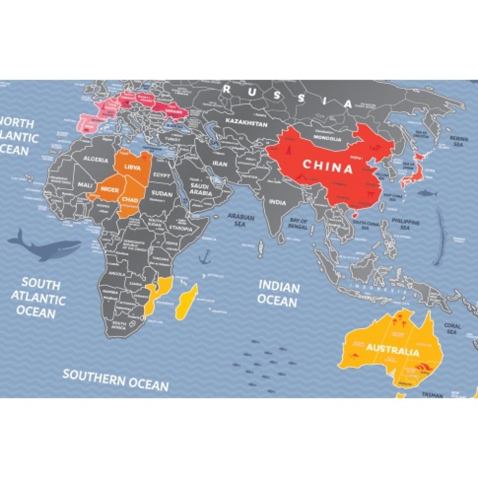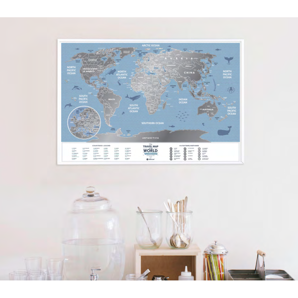 The scratch card is a unique decoration that will be appreciated by all travel lovers. You can mark and scratch countries you have already visited or those you want to go - use this map as an interesting gadget that will allow you to keep your memories or arrange your dreams - scratching individual countries, marking places on the map is really great fun!