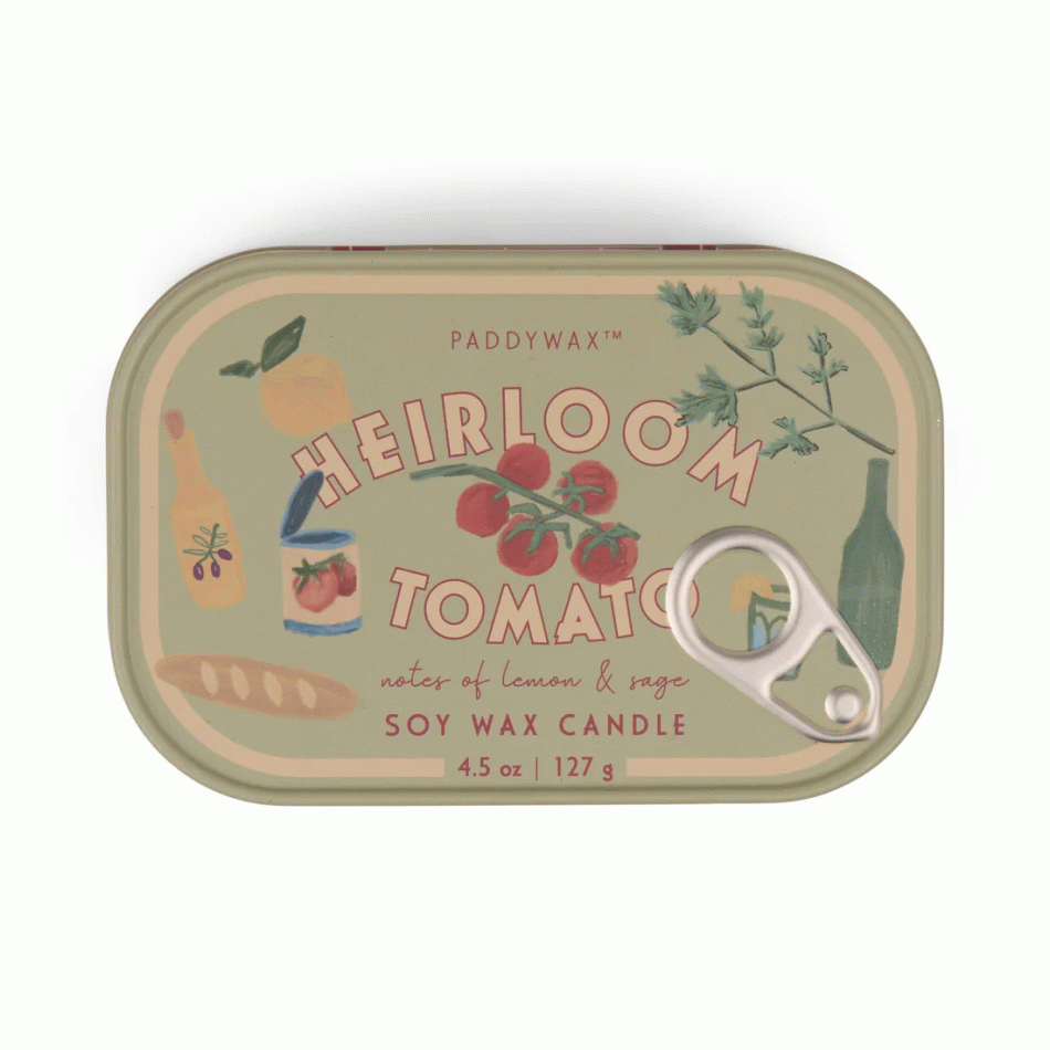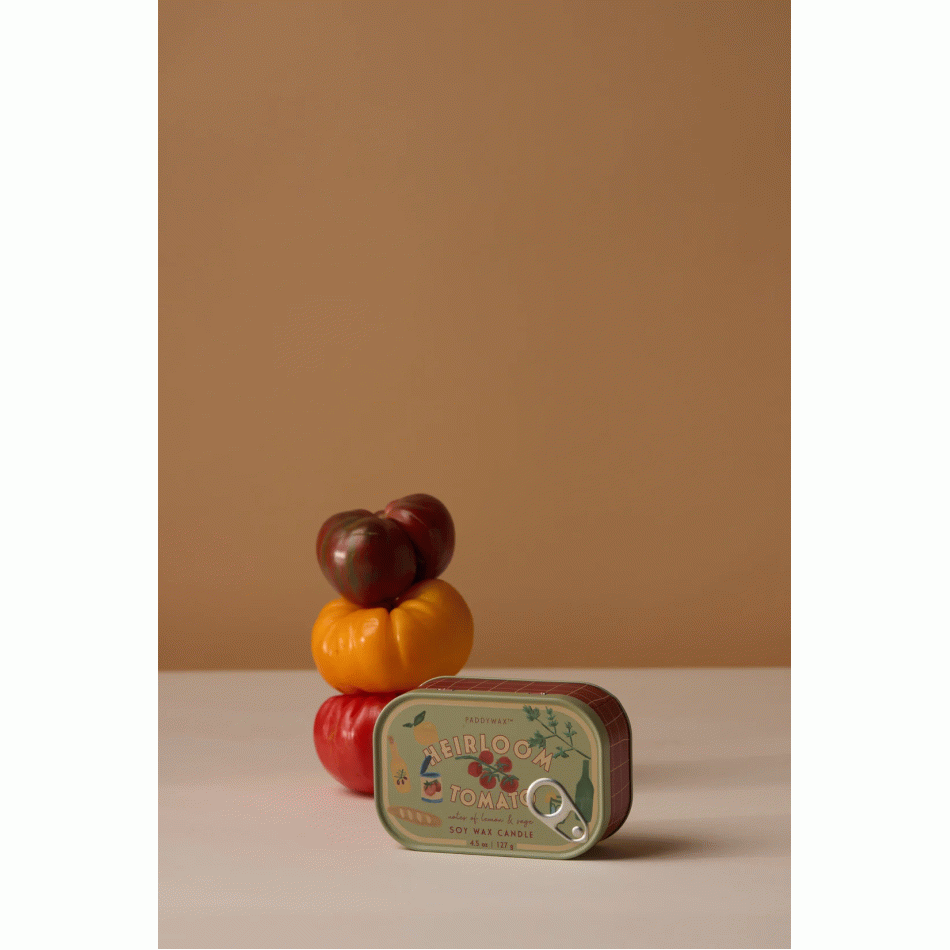 BIS0401EU Bistro 127g Tomato Printed Tin Candle Paddywax - Heirloom Tomato