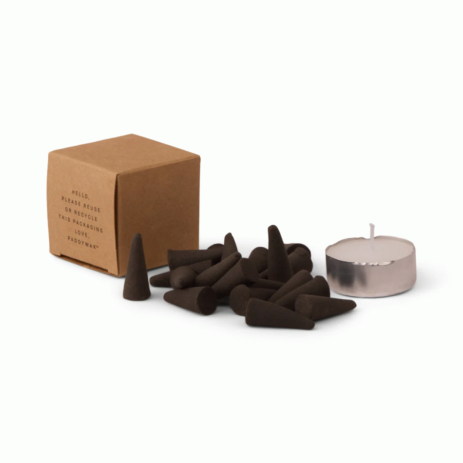 The set includes 20 palo santo cones and 1 tea light, so you can immediately enliven your home with fragrance and gentle light. The tower has compact dimensions - about 8 cm × 8 cm × 20.2 cm, which makes it suitable for both a bookshelf and a nightstand.