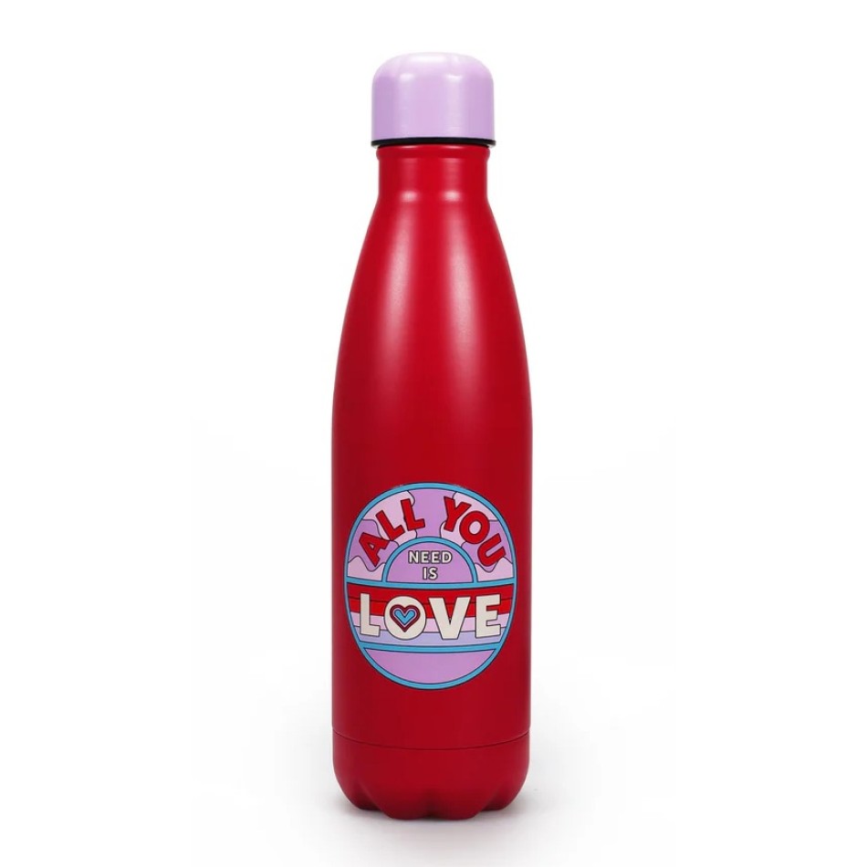 Copyright: The Beatles - This stylish metal bottle with a colorful motif and the text "All You Need Is Love" will turn any trip or workout into a mini concert of peace and love! Inspired by the legendary song by The Beatles, it brings positive energy and good mood every time you take a sip - the perfect companion for fans that combines retro charm with modern practicality.With double-walled stainless steel, a bright embossed design and a comfortable shape, it keeps drinks fresh and at the perfect temperature, adding a dose of rock and roll to your everyday life.