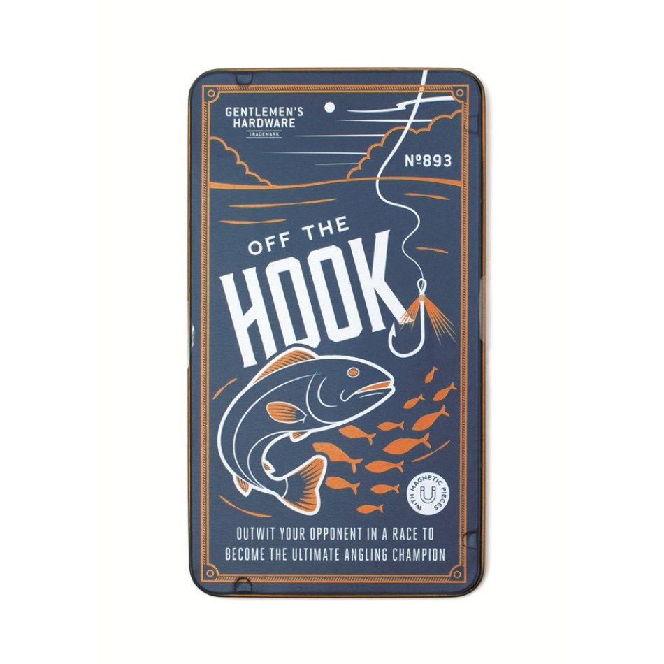 Copyright: © Designworks Collective Company - Imagine a game that doesn’t just test your luck – it brings out your inner fisherman as you secretly line up fish and catch your opponent’s with tricks! Our magnetic fishing game, Unhook the Hook, from Gentlemen’s Hardware, is unique in its compact, portable format – a brain-challenging, laugh-out-loud, and winning game that turns every game into an epic battle without a drop of mud or wet fishing lines, perfect for travel, dinners with friends, or office breaks.This crafty game for two is full of tactics: you secretly place fish on the magnetic board, position them, and “hook” them with hooks. The first one to clear your opponent wins! Durable, stylish, and with classic charm – the perfect gift for men who love to catch big fish!