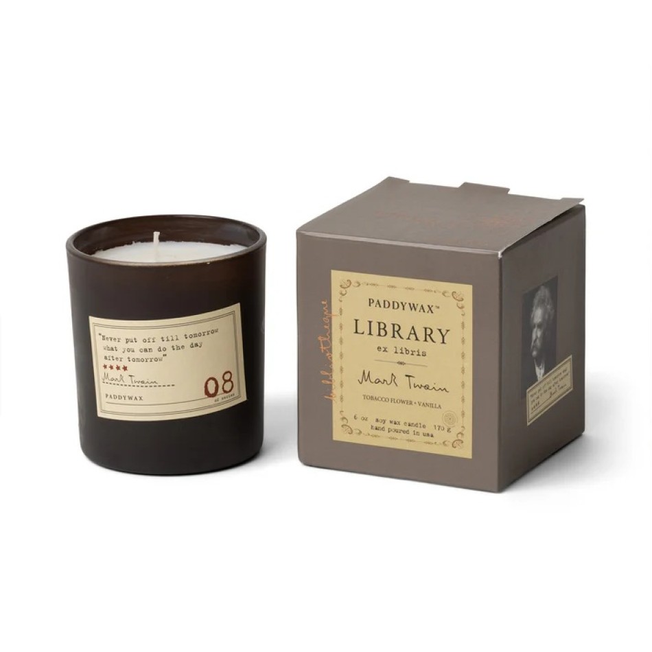 GL08EU Libary Candle Paddywax 170g Mark Twain - Tobacco Flower nad Vanilla