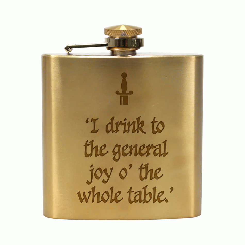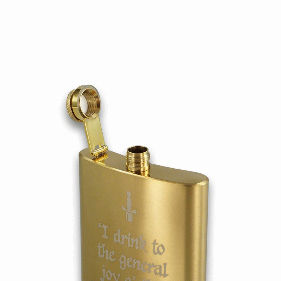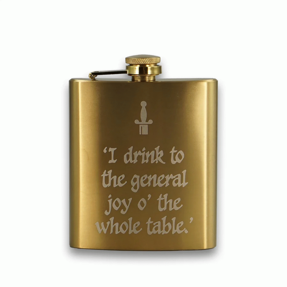 The pot is made of strong stainless steel and holds 200 ml of your favorite "potion", preserves the taste and does not miss a drop. The elegant embossed design shines like a crown in the dark, and the screw cap is as secure as a witch's curse. Lightweight, compact and pocket or backpack ready - comes in a beautiful gift box. And its inscription reads: "I drink to the universal joy of the whole table".