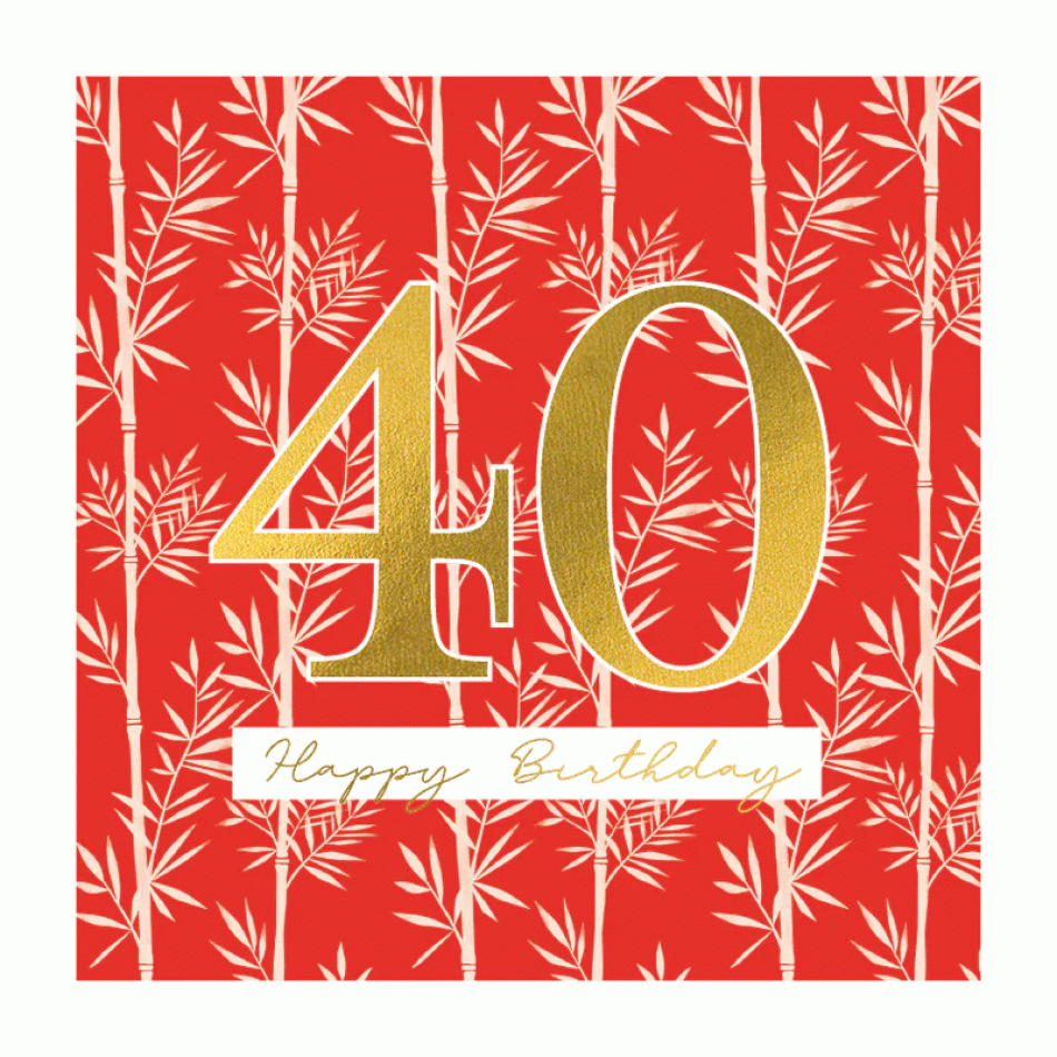 Copyright: © The Art File - This elegant red card with an exquisite bamboo design will turn your 40th anniversary greeting into a stylish and memorable message, filled with symbolism of strength, flexibility and longevity! With delicate bamboo motifs on a deep red background, it conveys a sense of harmony, success and Eastern wisdom – the perfect way to mark forty as a golden head full of achievements and new adventures.aWith quality paper, a minimalist print and a blank inside for your personal message, it adds a dose of warmth, elegance and joy to this momentous anniversary.