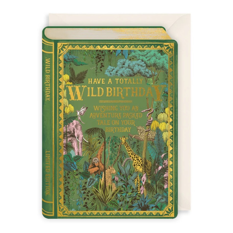 Copyright: © The Art File - Discover the wild and adventurous Birthday Greeting Card - Wacky Adventure from the Storybook collection - an exquisite book with an exotic jungle scene that will turn a birthday into a real wild adventure! It will bring energy, joy and a sense of exciting history, symbolizing an adventurous new chapter in the life of the recipient.Created with attention to detail: digital cutout, embossing, and luxurious gold foil on textured paper. The front reads "Wishing you a truly wacky birthday, a fairy tale full of adventures!" and the inside is blank for your warmest wishes!