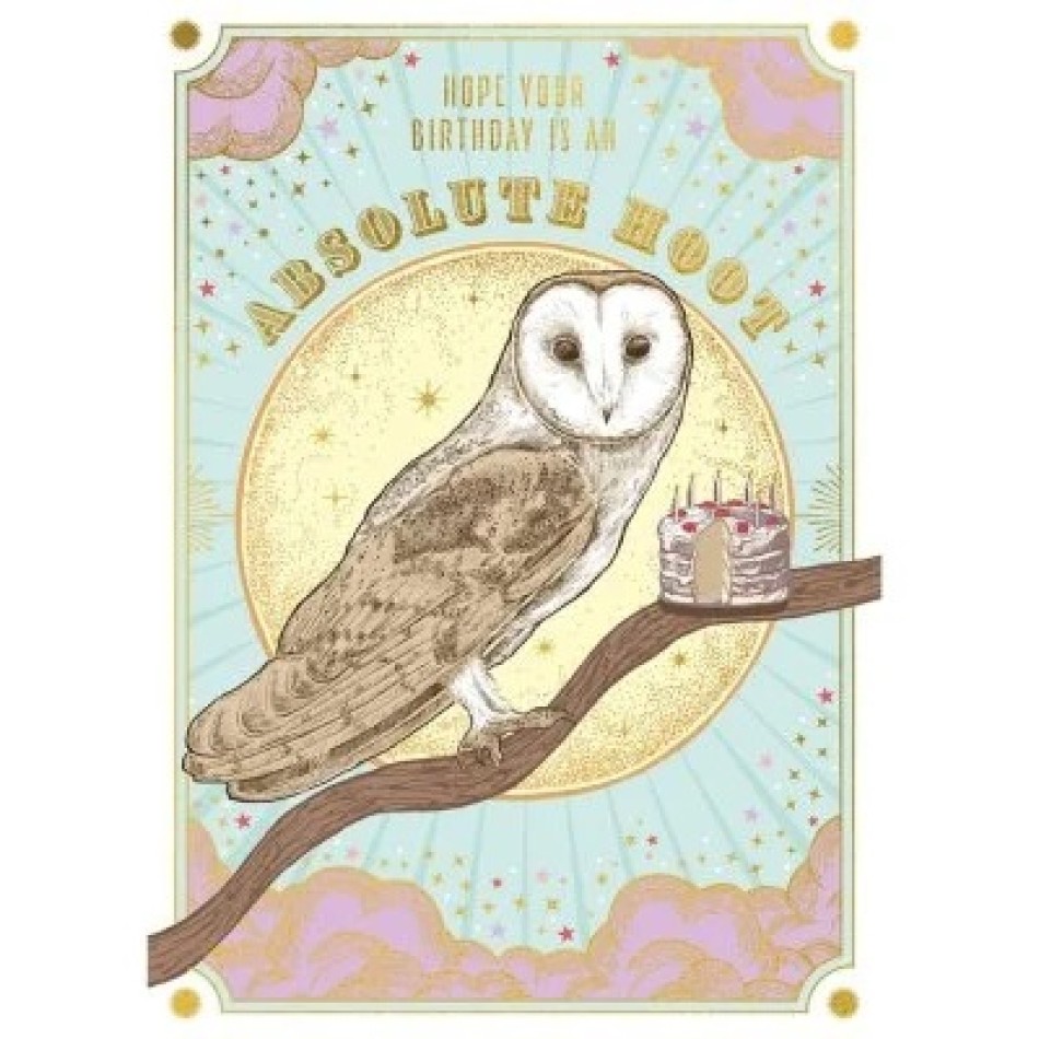 Copyright: © The Art File - We present to you the unique card "We hope your birthday is great!" – a fun and charming piece of jewelry with a playful owl and cake design that brings a dose of humor and holiday cheer. With glittering gold foil and deep embossing, it will put a big smile on the recipient's face and turn the card into a real "owl" experience - perfect for an animal lover's birthday, a humorist or anyone who likes light jokes!With quintessential British craftsmanship from The Art File, printed on luxurious paper that feels premium under the fingers. It is blank inside - for your personal, warm, humorous or heartfelt message. Made in the UK, with envelope included - perfect for fun birthdays, friends with a sense of humor and stylish greeting cards!