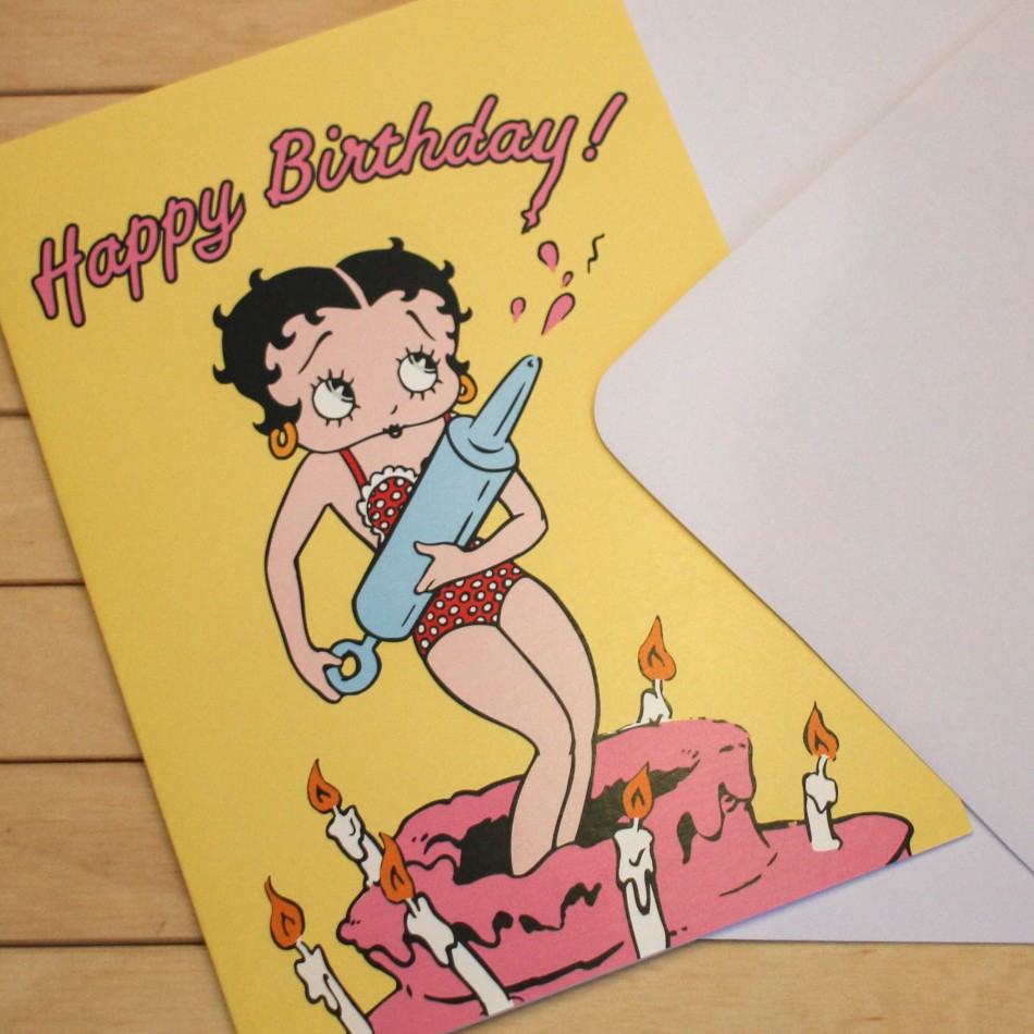 Greeting card Betty Boop Happy Birthday. Made in great detail from high quality materials. From thick paper with cool colorful design.