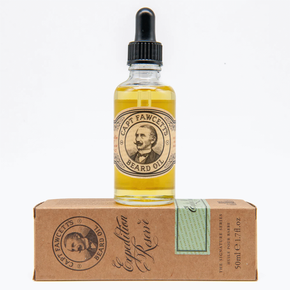 • Expedition Reserve Beard Oil, Captain Fawcett - 50ml by Captain Fawcett - the full-size beard elixir inspired by the captain's botanical discoveries during global expeditions. This premium blend of natural oils transforms your beard into a well-groomed trophy: softens coarse hairs, deeply hydrates the skin underneath, eliminates irritations and leaves a subtle, long-lasting scent that makes you feel like a modern adventurer with impeccable style and confidence.