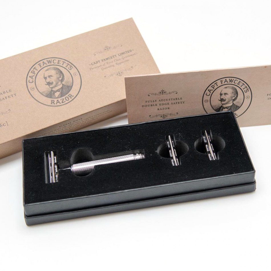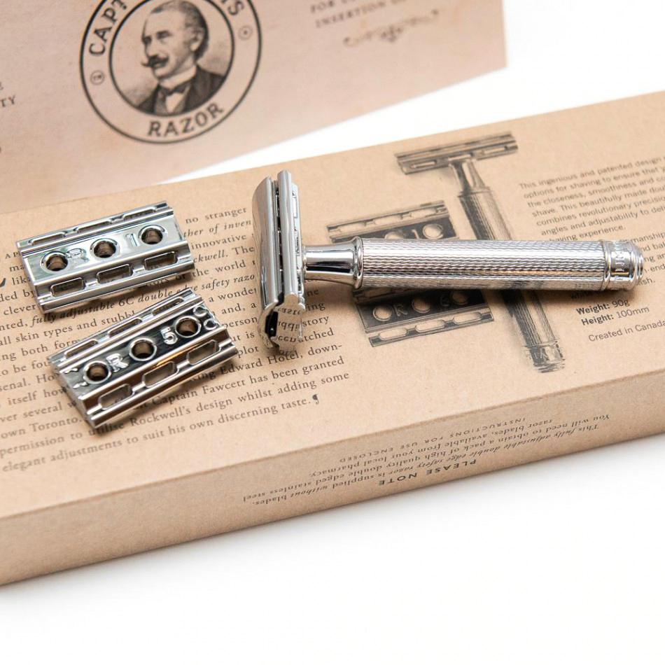 Captain Fawcett, himself no stranger to the maxim that ‘necessity is the mother of invention’, is likewise a huge admirer of the innovative skills expounded by his dear chums over at Rockwell. These clever chaps are the creators of the world-renowned, patented, fully adjustable 6C double-edge safety razor, designed for all skin types and stubble lengths.