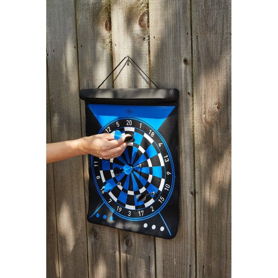 - • Design: roll-up, magnetic, two-person dartboard