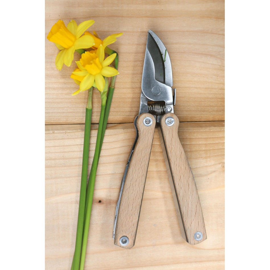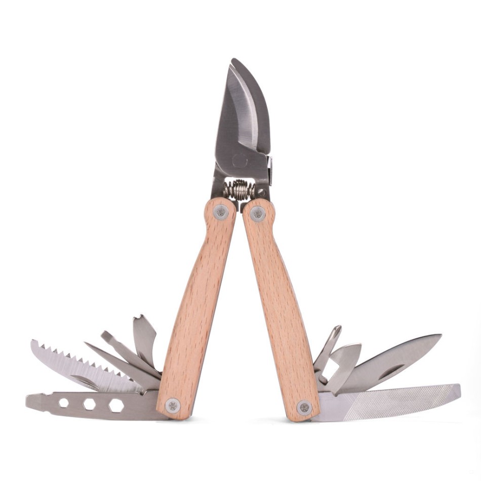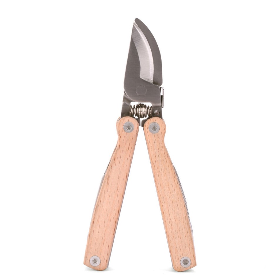 - Scissors? What scissors, as many as 12 (twelve!!!) tools are hidden here, so we hasten to present to you what a miracle of miracles this seemingly small multi tool hides:Shrub shearsKnifePhillips screwdriverCan openerLineSawStraight screwdriverHexagon - 4, 5 and 6 mmShilohA small straight screwdriverBottle openerSawThe tool is made of stainless steel and beautiful beech wood, which is both light and comfortable to use. Basically, you don't need anything else from here on out, other than a garden to maintain. And beware of the roses!