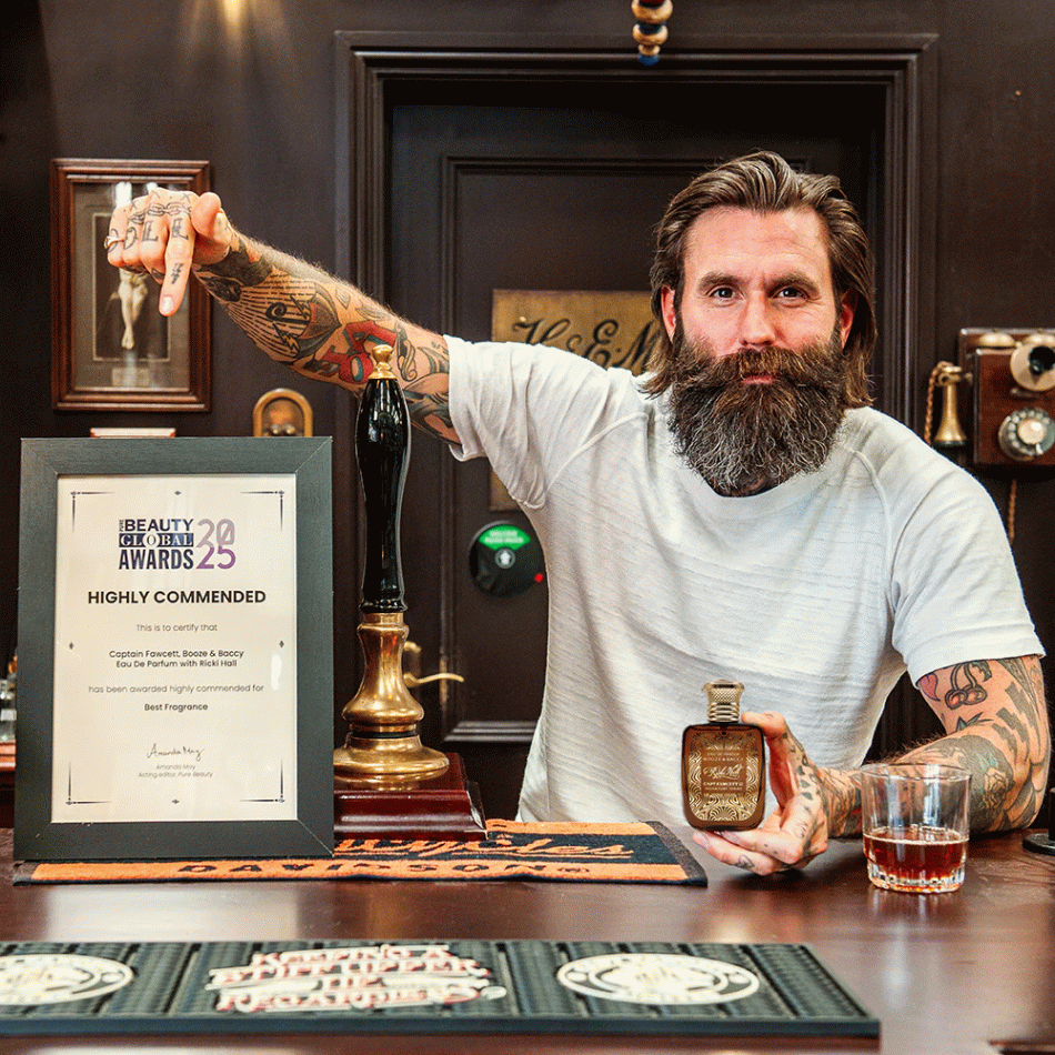 “I was thinking about what men were like when I was a kid, strong blokes who didn’t apologise for being masculine. I wanted to bring that back – the smell of being an adult in the 70s and 80s – booze, cigarettes, leather, aftershave, pub – it’s a bit of time travel. This sort of man, he’s pulling up in a Ford Capri, leather jacket, hairy chest in an open shirt with a gold chain. Pint in his hand, pack of Bensons, laid back and smart with an eye for the ladies and a reckless streak but honourable you know – a proper gentleman, cocksure but a real charmer – everyone wants to be around him but a look in his eye means you wouldn’t cross him. It’s a real intense male scent – assertive, potent, the kind worn by a man with a score to settle, but only once he’s finished his pint”. Ricki Hall.